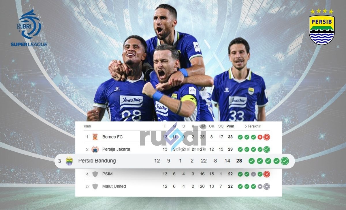 Poin kunci: Persib berada di posisi ketiga dengan 28 poin, hanya terpaut satu poin dari Persija di posisi kedua. Mereka memiliki pertahanan terbaik bersama Borneo FC, dengan hanya kemasukan 8 gol. Memiliki satu pertandingan lebih sedikit dibanding pesaing di atasnya, yang bisa menjadi keuntungan strategis.